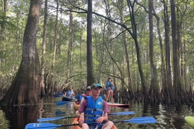 Immerse yourself in a paddle adventure at Manatee Springs State Park amongst the manatees, sturgeon, and ancient cypress trees. This easy paddle begins in the crystal clear waters of a first magnitude spring, where manatees congregate between November and April. A friendly and knowledgable guide shares a wealth of interesting information about the park and all it’s inhabitants as you make your way through the spring run into the majestic cypress canopy on the edge of the Suwannee River.